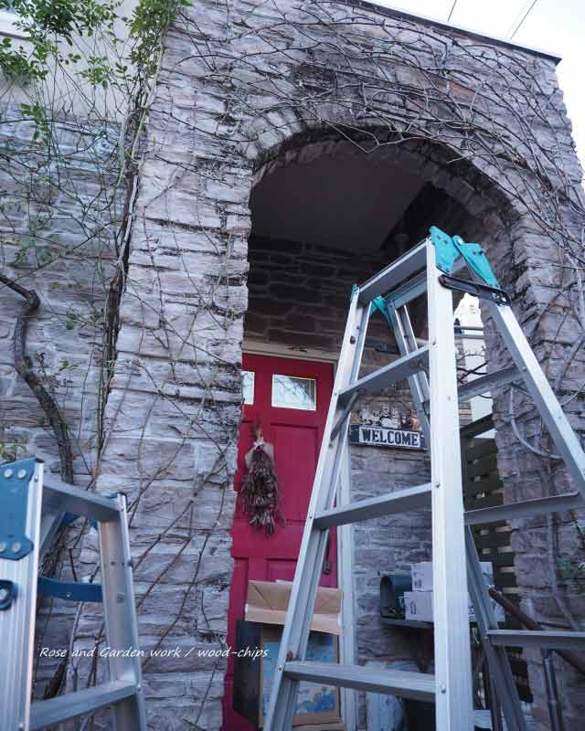 例年はアーチからでしたが、かがんで行う作業をしばらくしていたので、なんとなく高い脚立に上がりたい気分だったので。
