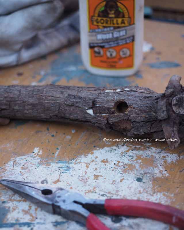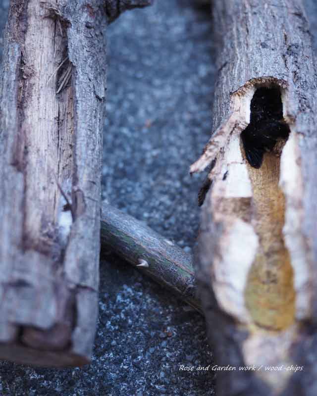 抜かれてしまったにしても、前回の冬作業で穴に気が付かなかったというのは腑に落ちず、剪定したあとで確認して見ようと、ひとまず下に投げておきました。