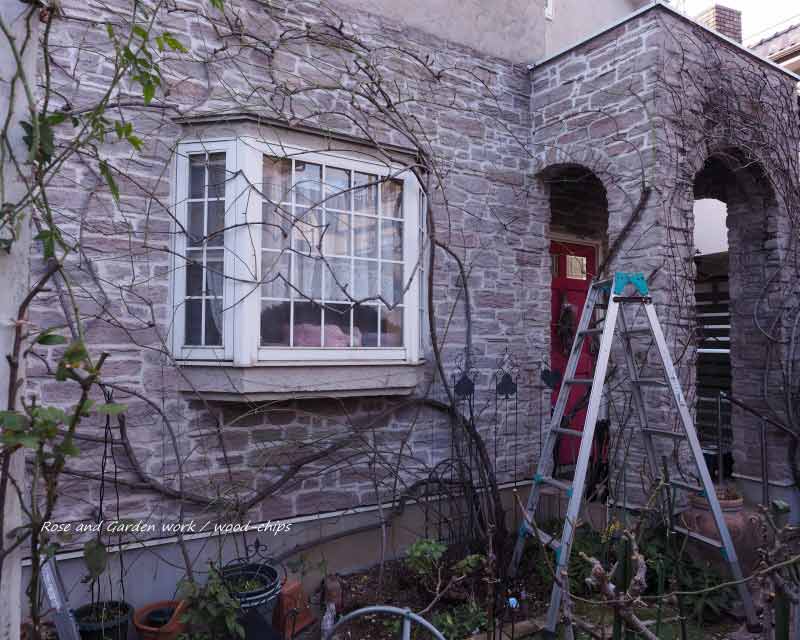 バラの剪定と冬の作業【壁面への誘引に古枝の更新】国立市の庭へ