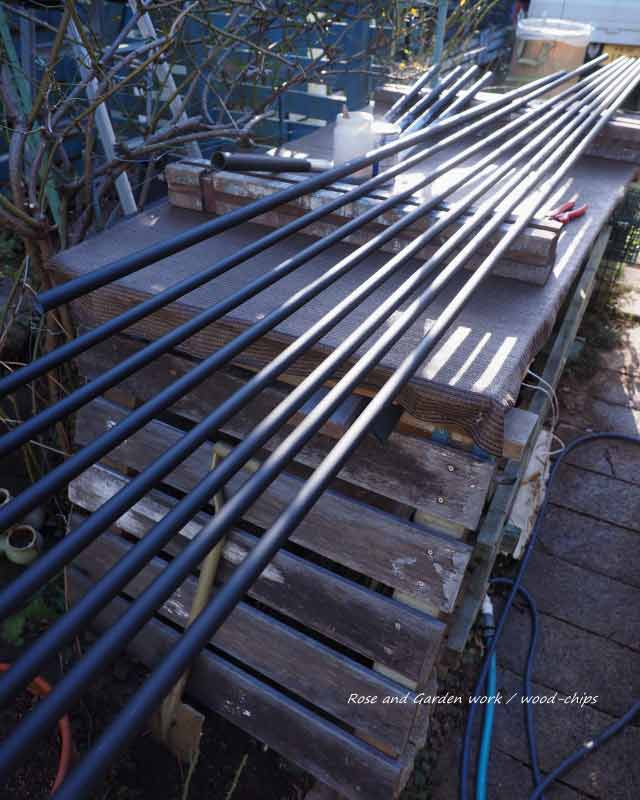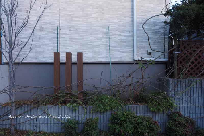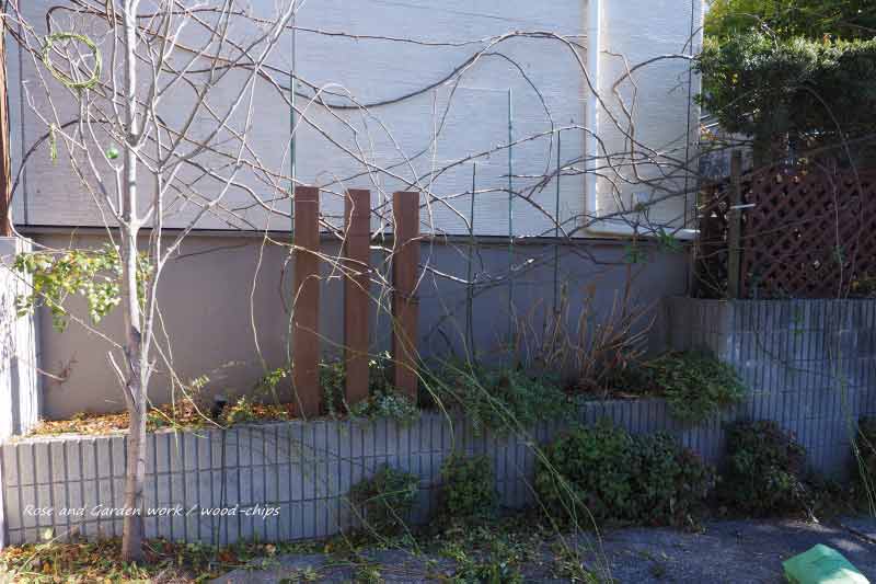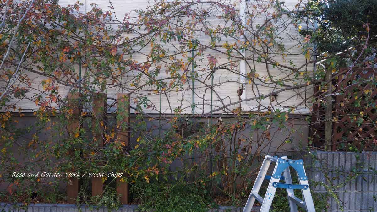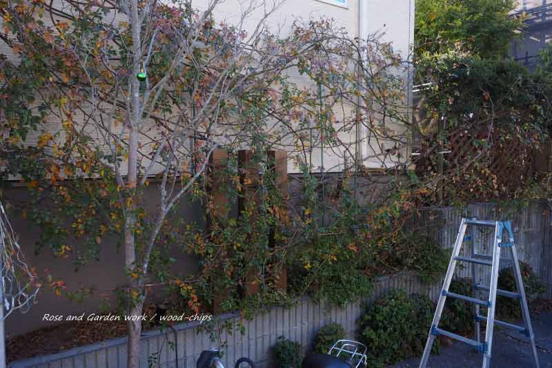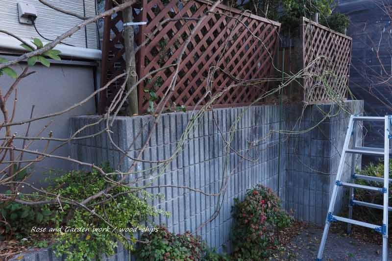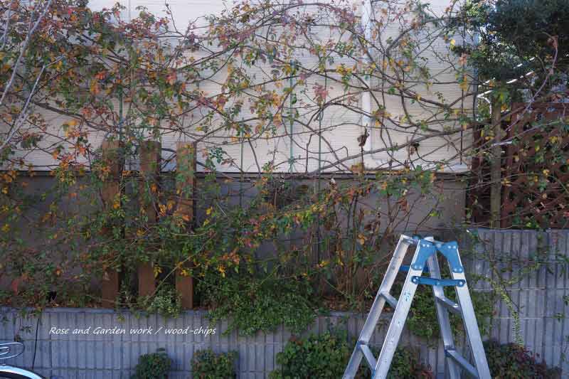 新しいフェンスに変われば枝の誘引をよりスムーズに進められること、アトリエの加工台がバラに覆われる前だったことを踏まえ、対応時季は過ぎていましたがお受けしました。
